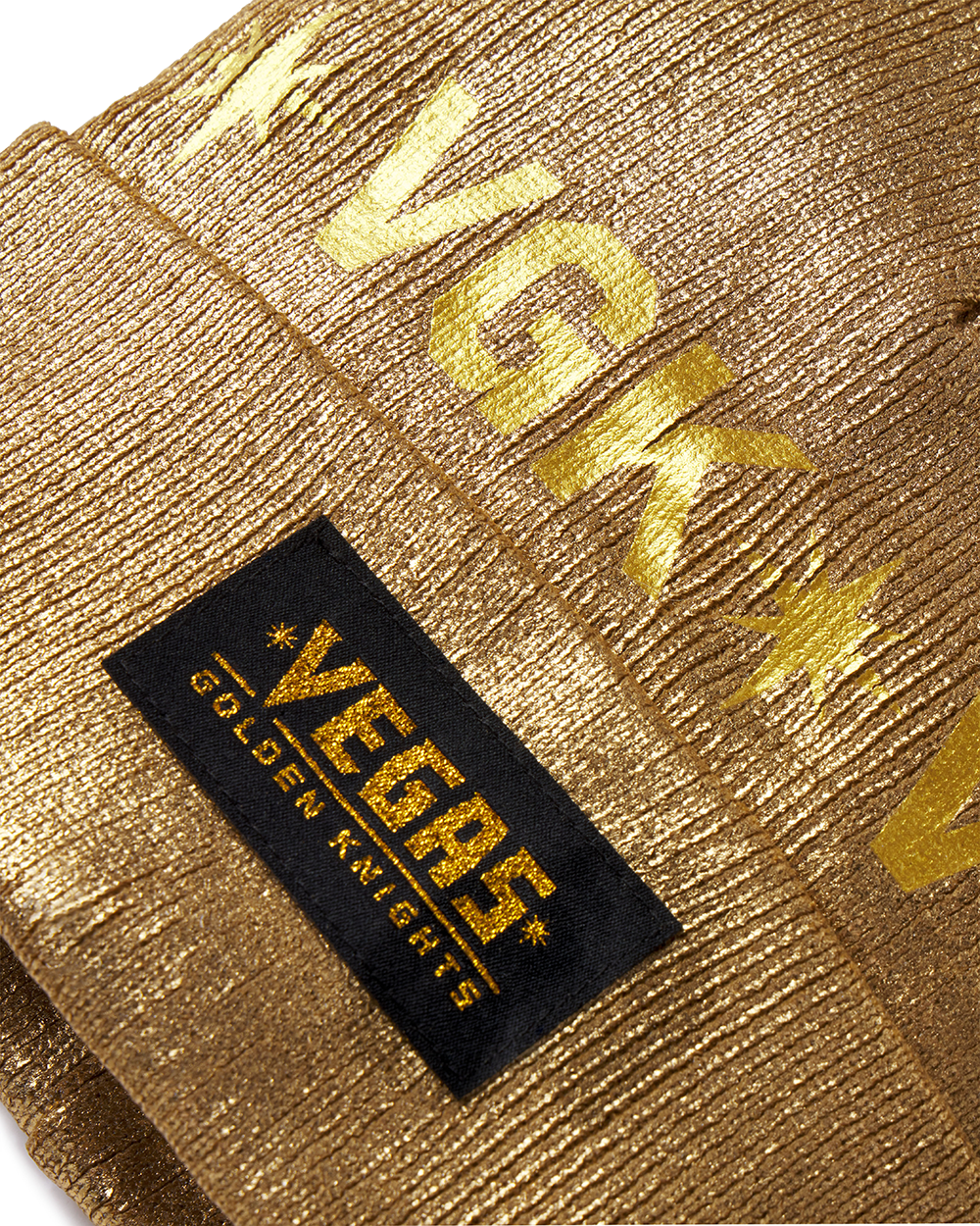 Gold-colored corduroy fabric with VEGEE label for Vegas Golden Knights Gold Label Knit Cap