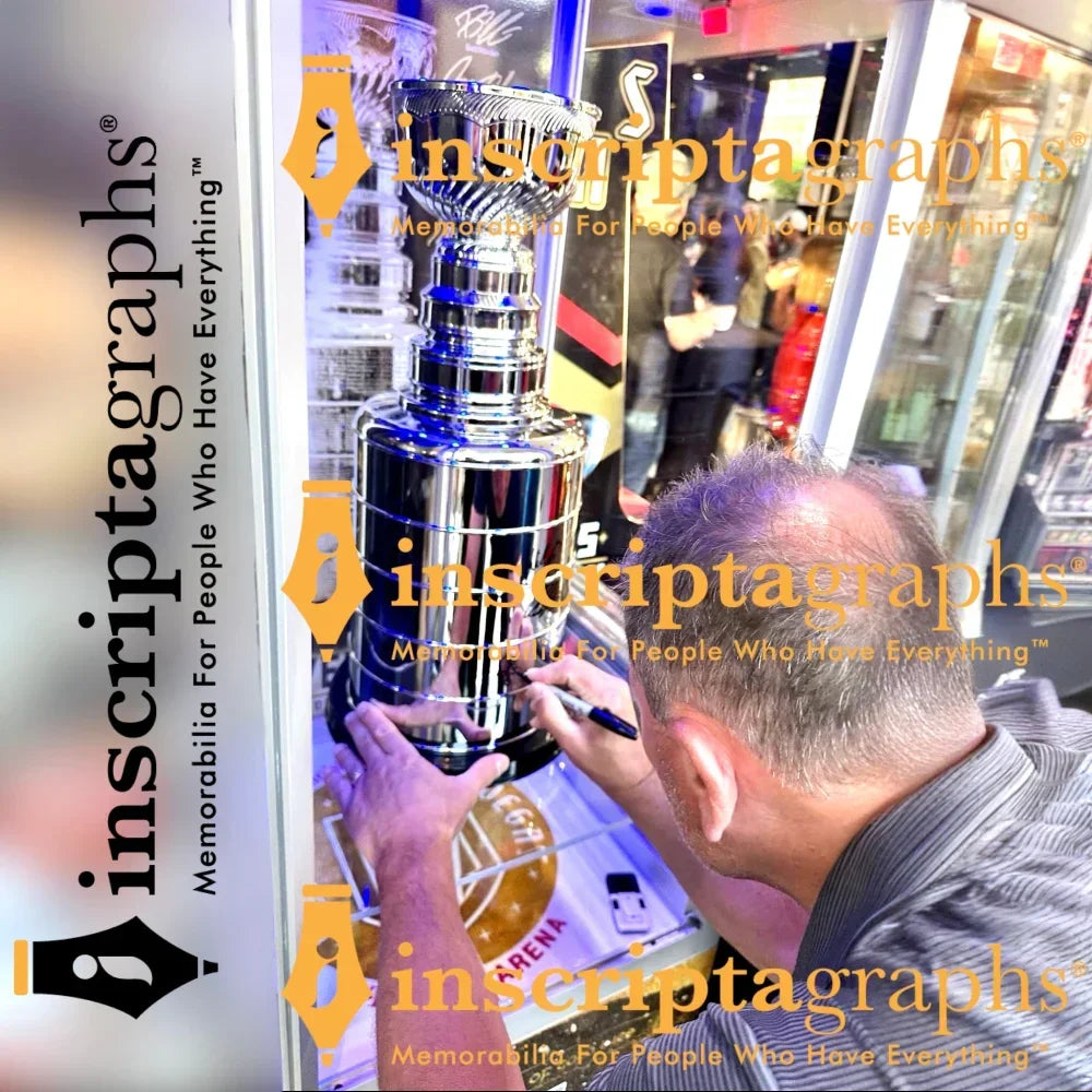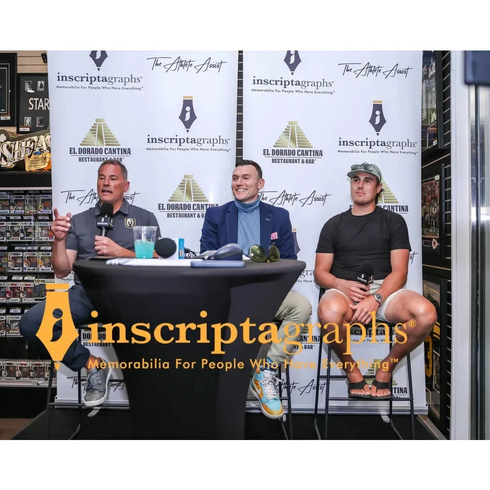 This item is certified authentic by Inscriptagraphs Memorabilia and was signed on May 22, 2024, at our private autograph signing with him in Las Vegas, NV. See proof photo of him signing autographs for our company in this listing from our Q+A event, as well as other players from that signing event. The certificate is available on the Inscriptagraphs hologram database website that is indicated on the gold tamper-proof hologram on the item. This item will also include the paper certificate of authenticity card. You will enter the code number on the hologram of this item into our database and up will pop the certificate of authenticity for this item, forever. You can print out that document as proof of the authenticity of this collectible.