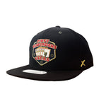 Featuring two embroidered patches and an adjustable snapback strap.