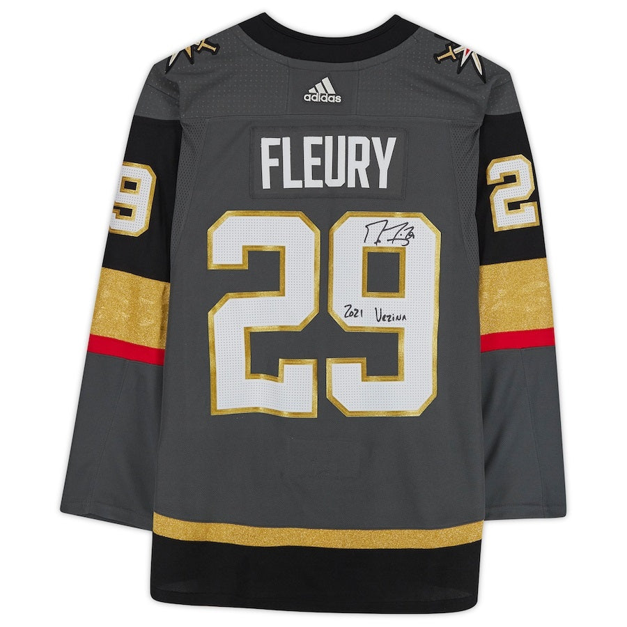 Rep your favorite Vegas Golden Knights player with this Marc-Andre Fleury autographed Home adidas Authentic Jersey with ''2021 Vezina'' Inscription. It's just like the one the Vegas Golden Knights star wore on the ice during his career. Along with official team details, this jersey features Marc-Andre Fleury's signature on a back number for the ultimate collector's item.